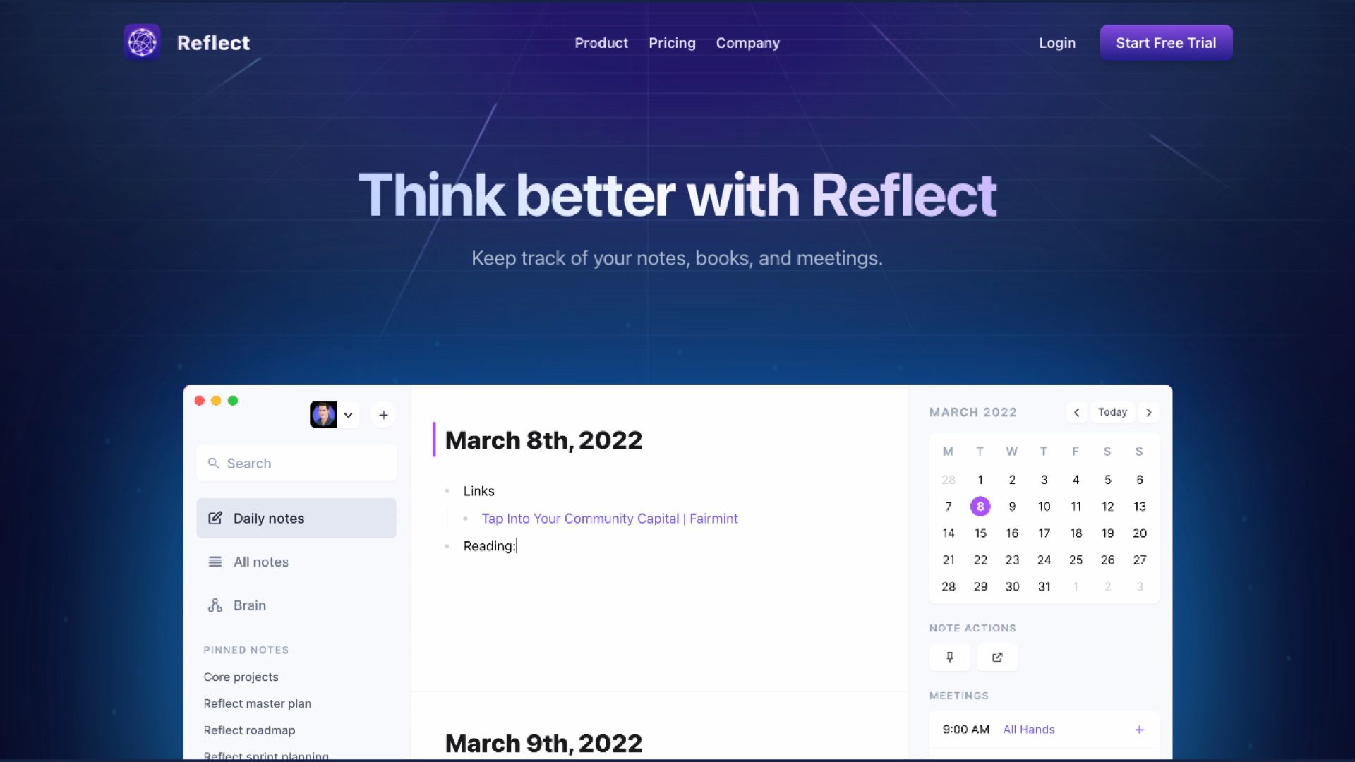 Reflect promising you can “think better” with this. Even if they don’t use the phrase “tools for thought” directly, creators of these tools understood they were now supposed to be in the business of making people think better