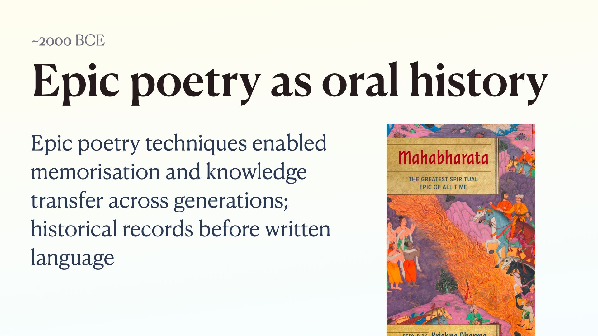 It’s how pieces like the Epic of Gilgamesh and the Mahabrata survived long enough to eventually be written down
