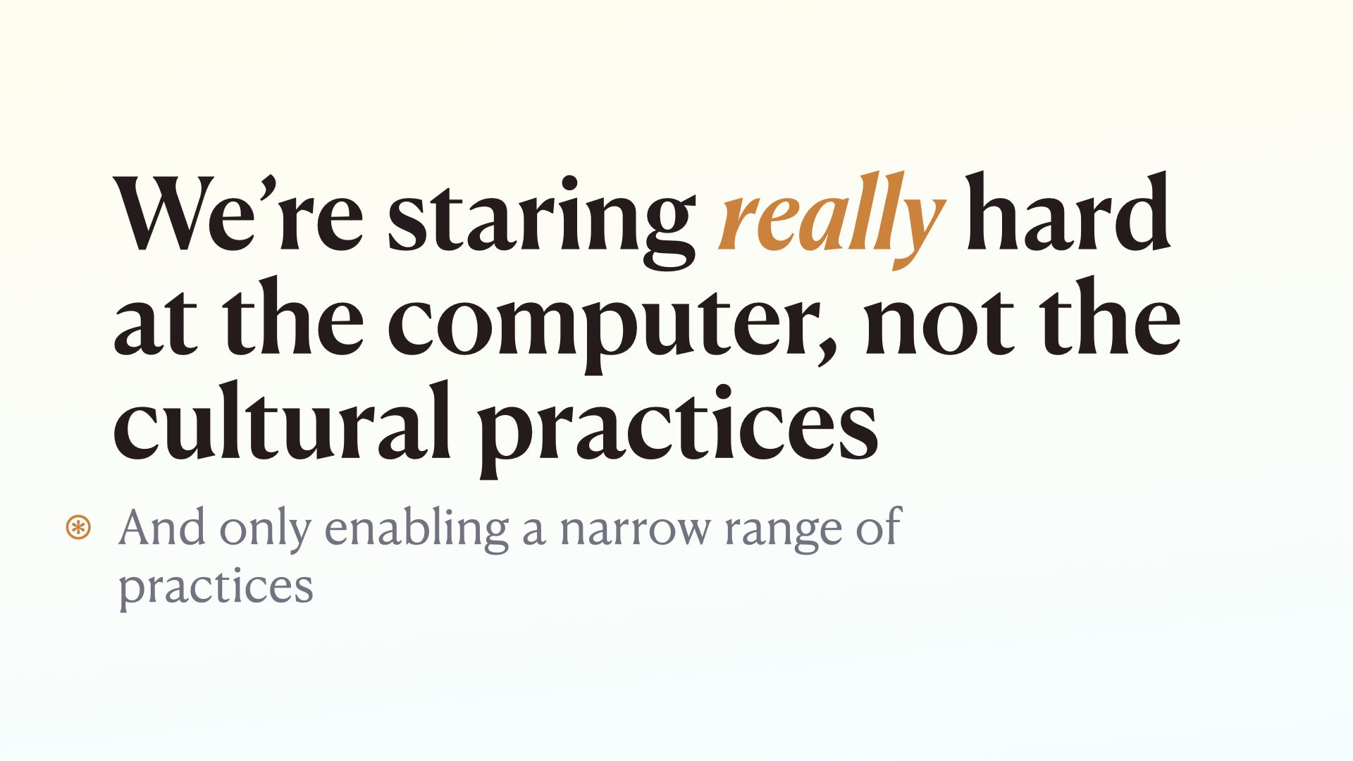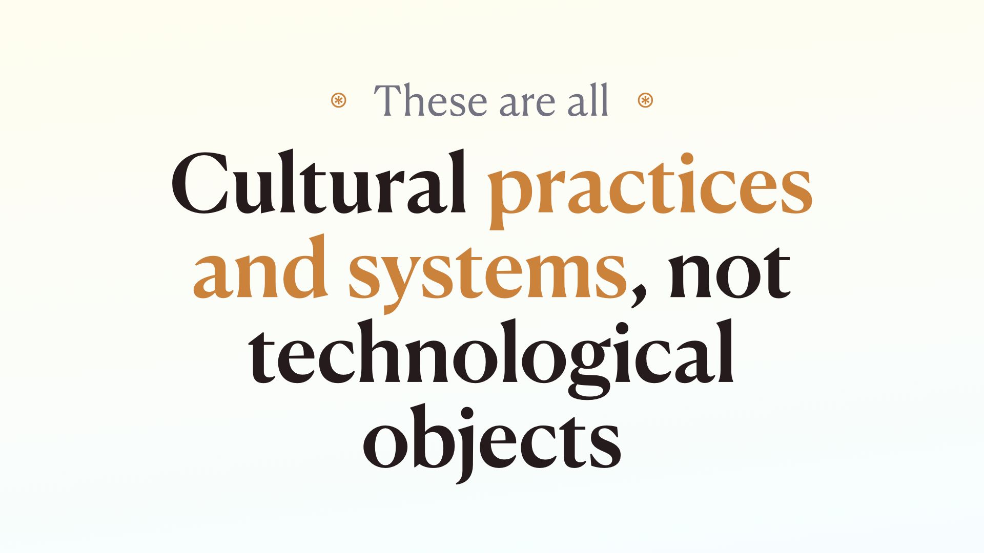 I think we need to pay much more attention to cultural practices, not computational objects.