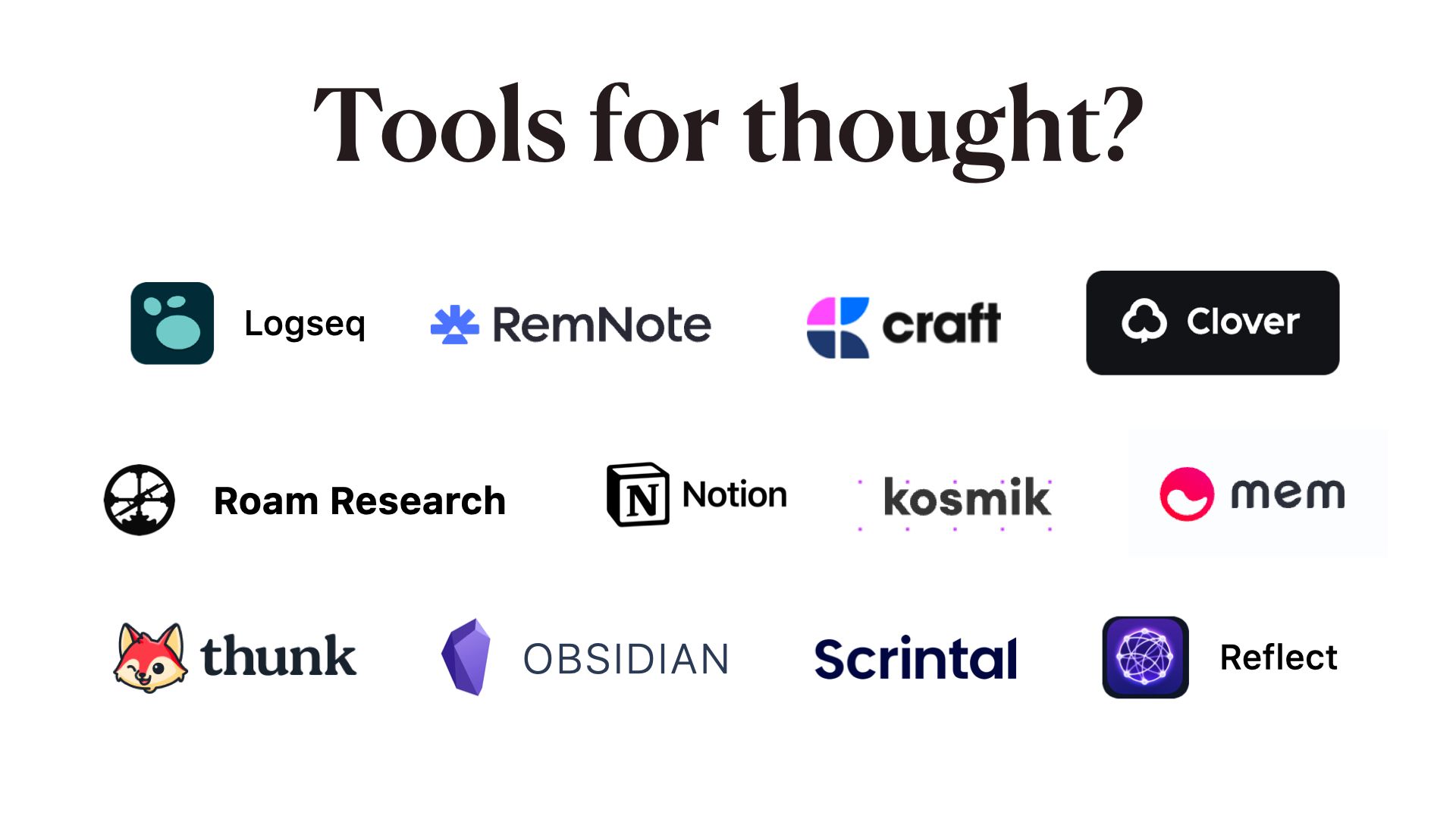 So we’re in an interesting place; all this software is being called tools for thought And most of the community is focused on building more software