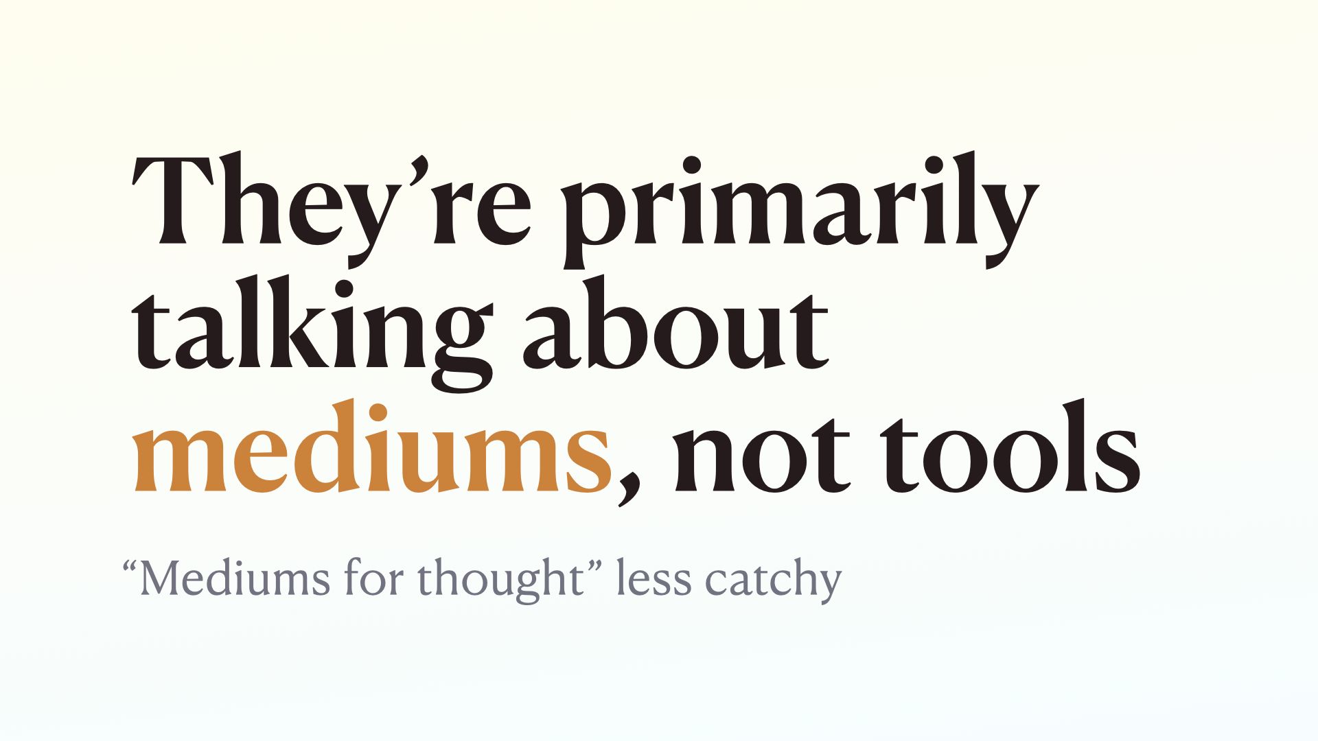 Another interesting thing about the way these programmers are talking about “tools for thought” is that they’re actually talking about a medium for thought, not a tool.