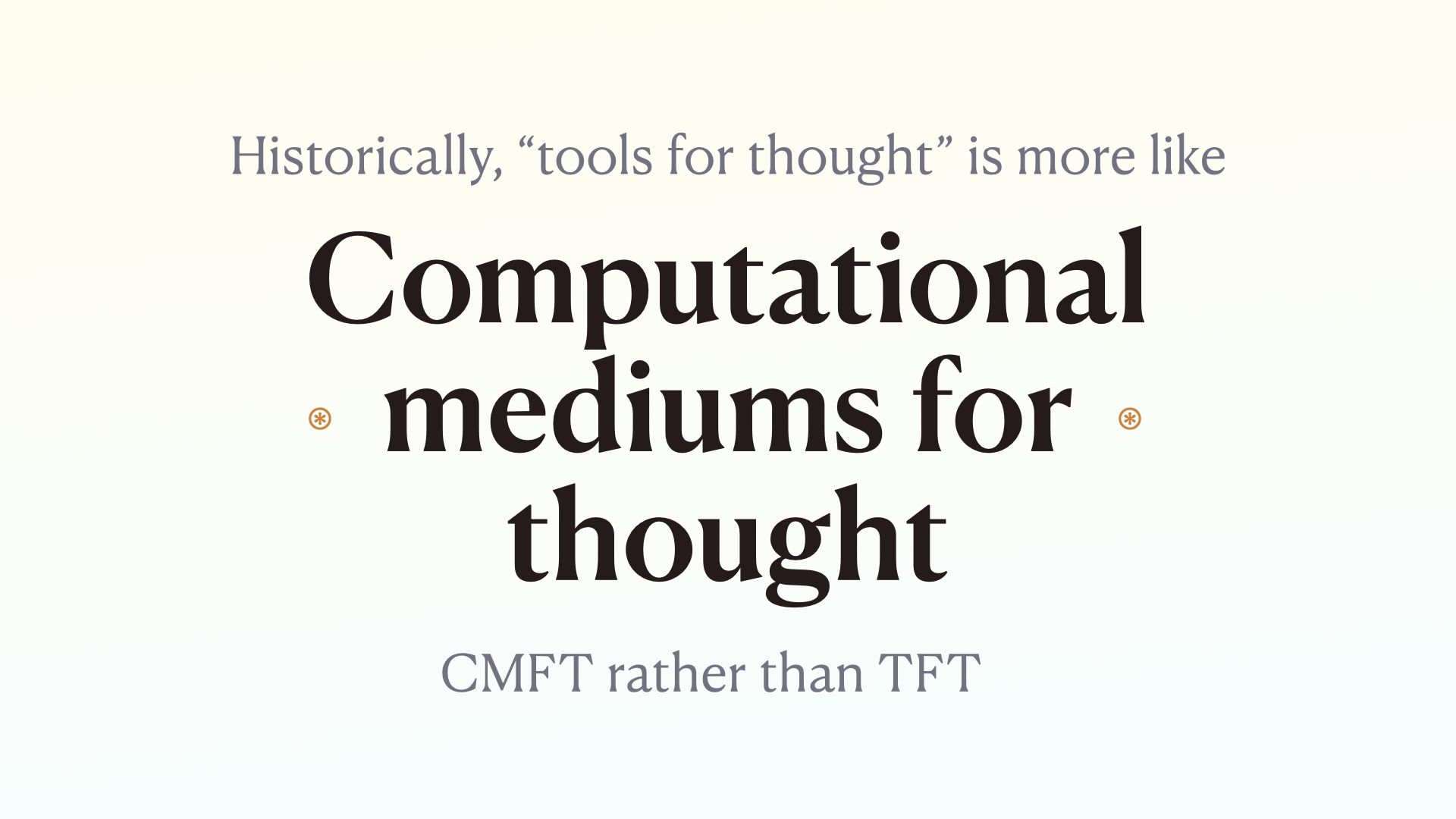Also clear than CMFT is a subset of TFT If TFT is all the tools and mediums that expand the range of human thought, this community is specifically talking about the computer medium type